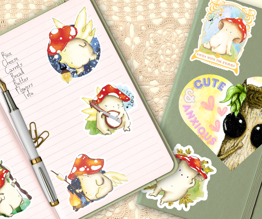 Buttons the Quiet Mushroom Vinyl Sticker