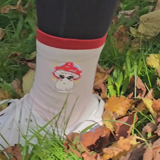 Step up the mushie magic of your outfit, whilst keeping your footsies toasty and warm with these adorable Baby Alba embroidered socks 🍄💞